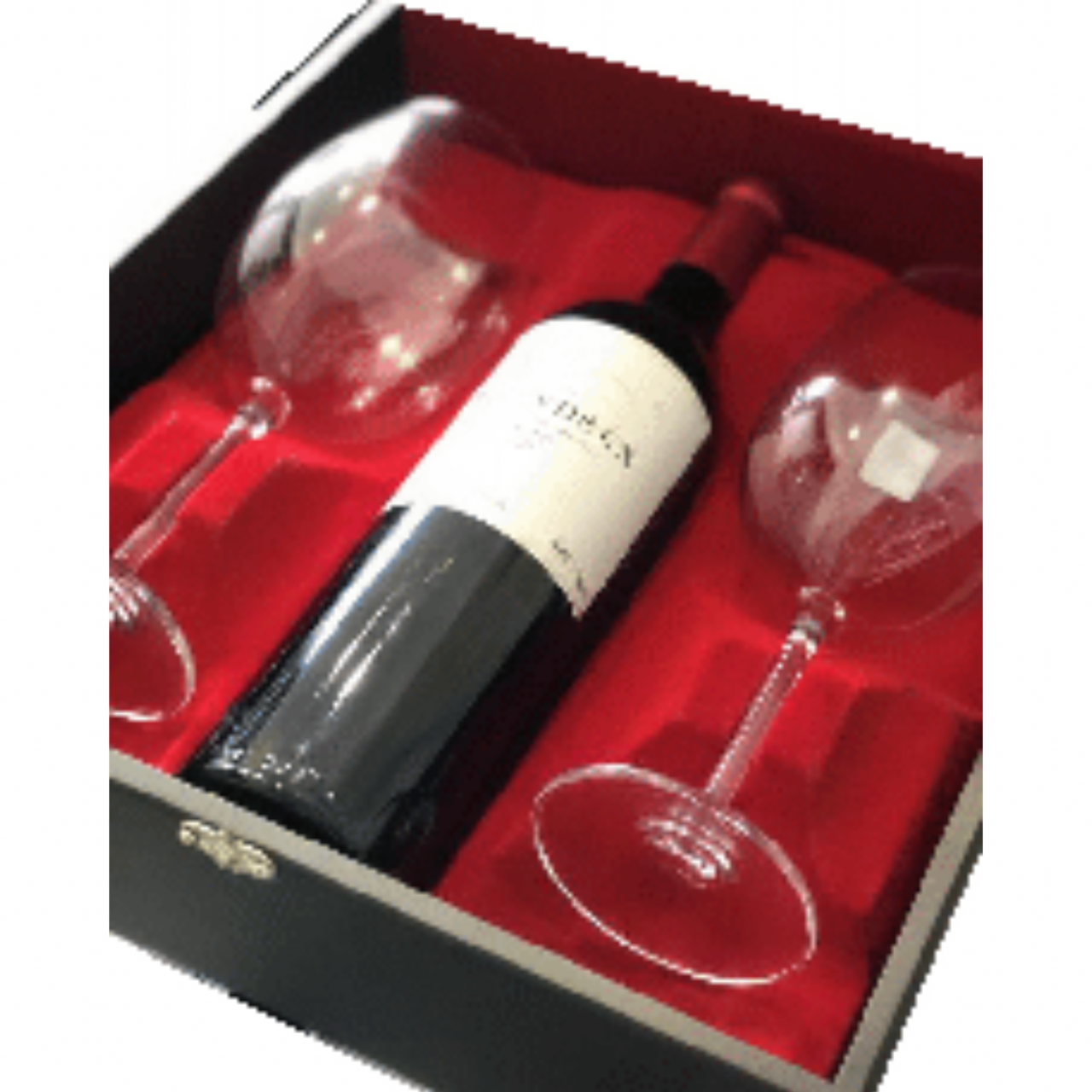 Estojo para uma Garrafa de 750 ml e duas Taças de Vinho.